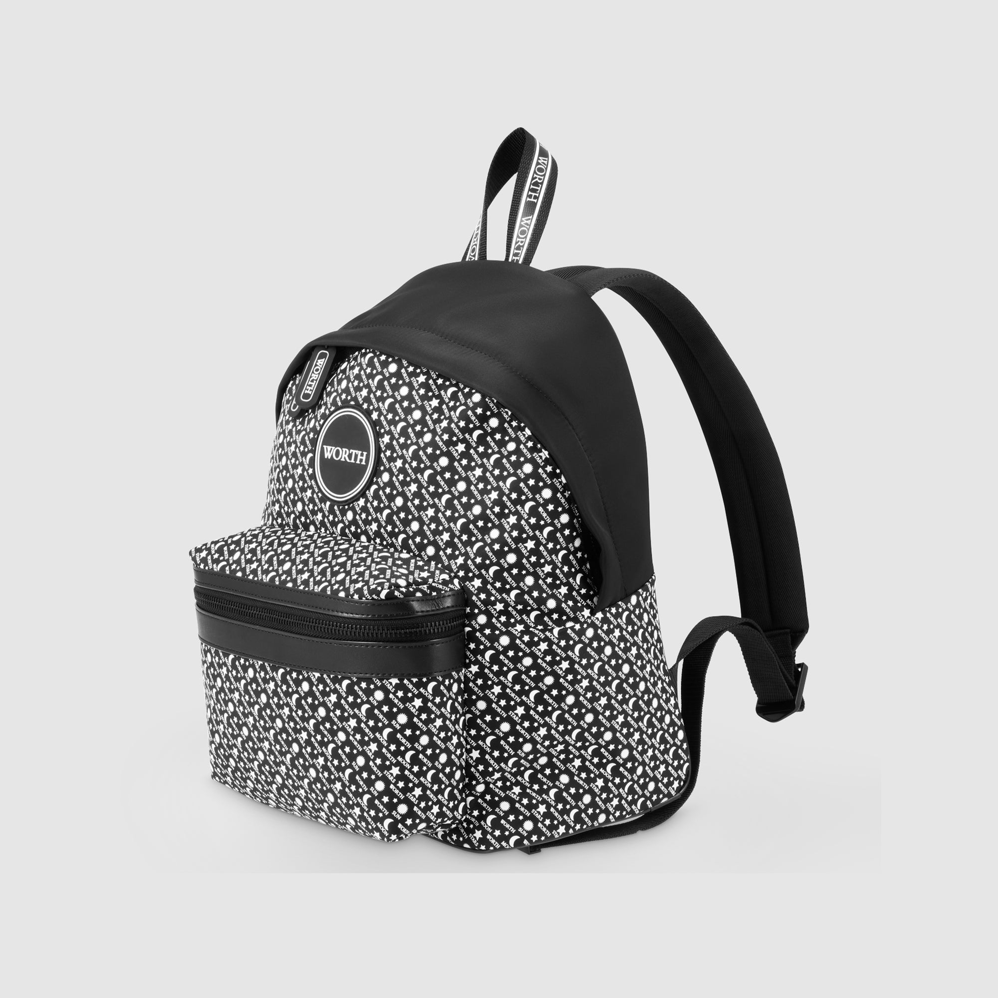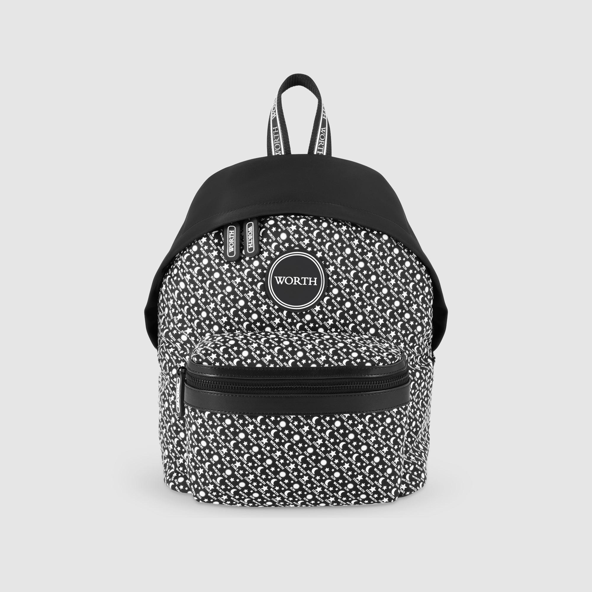Classic backpack with a modern twist. Iconic moon and stars printed front panel adds a contemporary feel. Features include a two-way zip closure, a large zip pocket at the front as well as adjustable padded straps. Silicone badge and zip pulls add a sporty feel making this the perfect bag for daily life. Comes with dust bag.